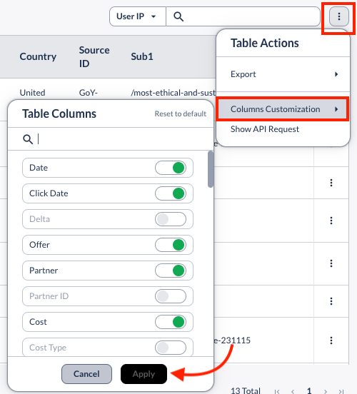 - Click report: a detailed report of all clicks registered on your affiliate links;