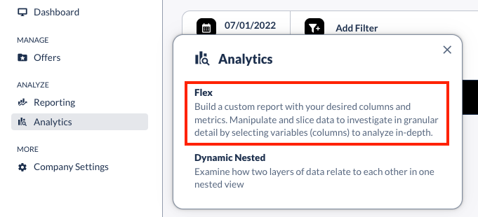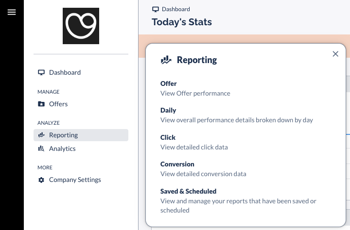 - Offer report: overall performance report; including a breakdown of your performance by publisher.