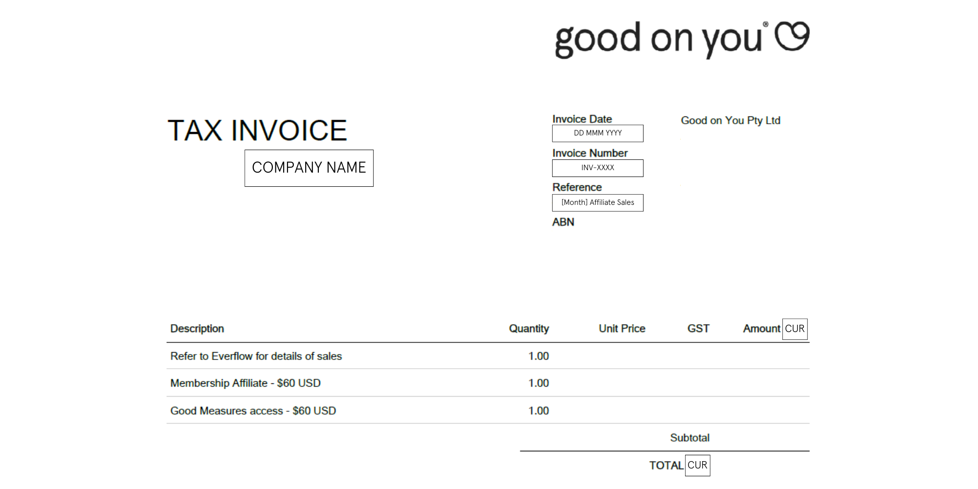You receive your invoices via email and can look for them by searching for "Xero" in your inbox. If you're having trouble finding them, please email your account manager or affiliates@goodonyou.eco.