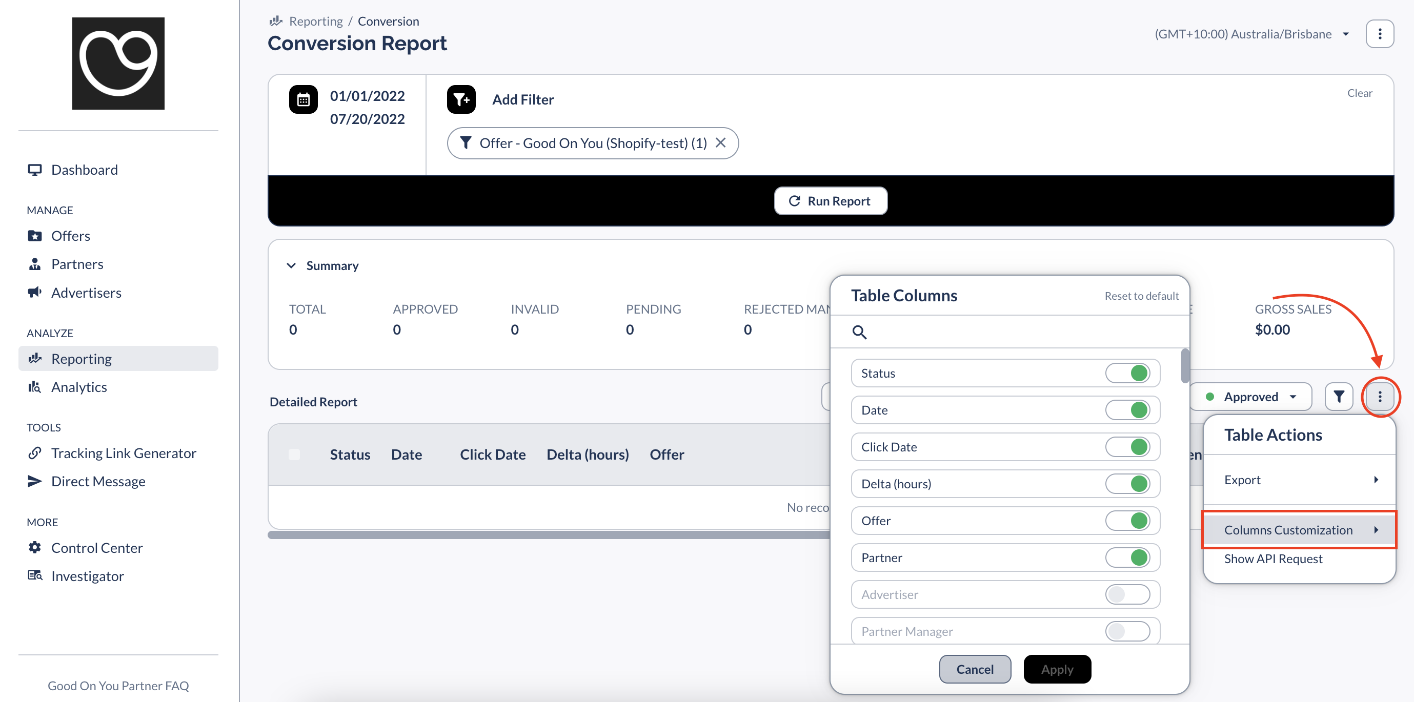 (2) Go to the three-dots button and select 'Columns Customization'.